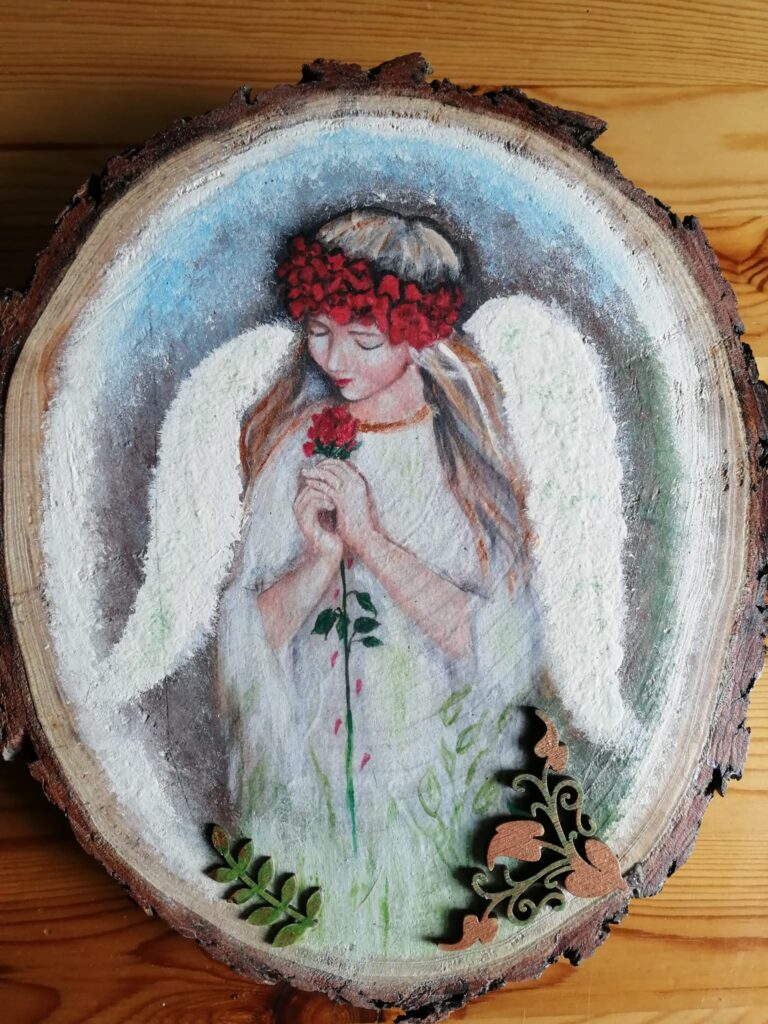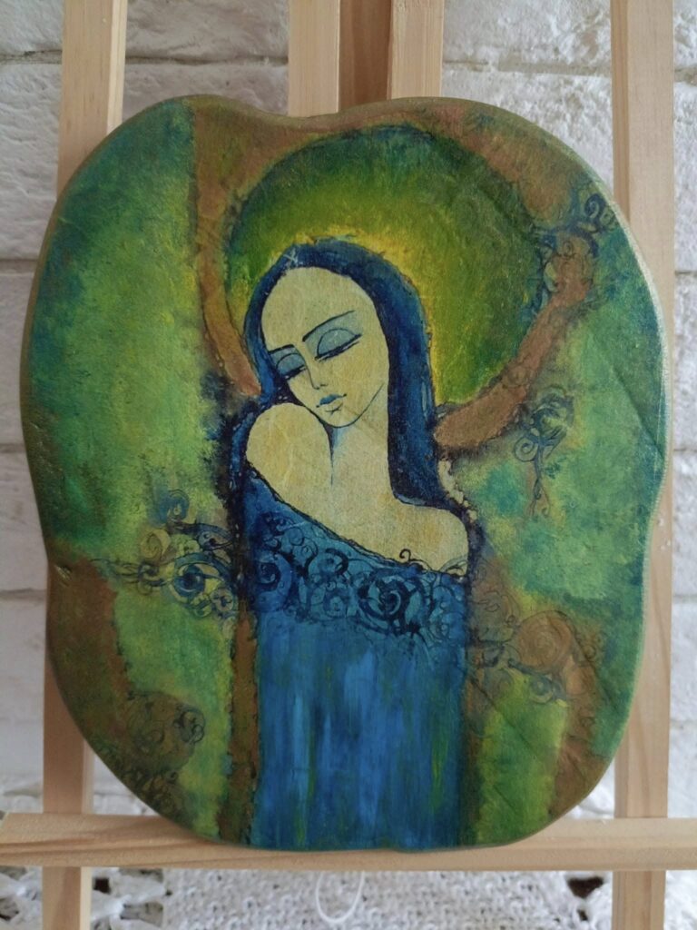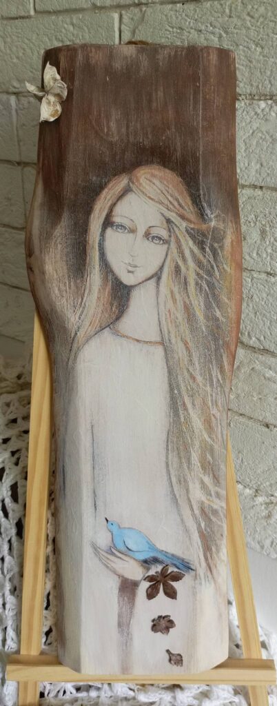 Oto kilka przykładowych prac. Aktualne prace wystawione do sprzedaży mogą Państwo znaleźć na Facebooku W sieni – składzik u Ewy.